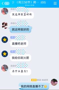 但真正的上课效果会怎样呢?上课前的那天晚上,学生们热心地在班级QQ群里分享了其他老师上课的各种好方法、好形式,有的学生还专门私信我,告诉我怎么使用一些教学软件。感动之余,我对自己的授课方式又产生了动摇,不知道学生会否喜欢。第二天,我心怀忐忑地上完了第一次网课,再问学生,四个班级无一例外地回复:“陈老师,就这样上!”