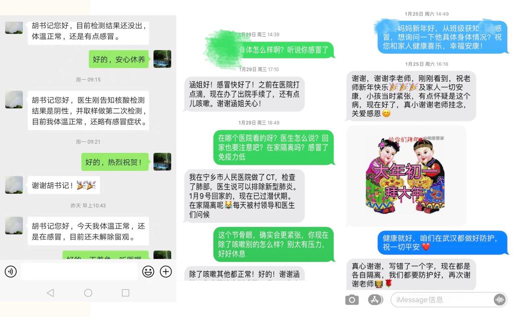 2.针对隔离学生。针对返乡同学出现感冒、发热等症状居家或医院隔离的同学,辅导员跟踪联系,并努力与家长、医生取得沟通,了解其具体情况,叮嘱其注意事项,缓解其恐慌情绪。