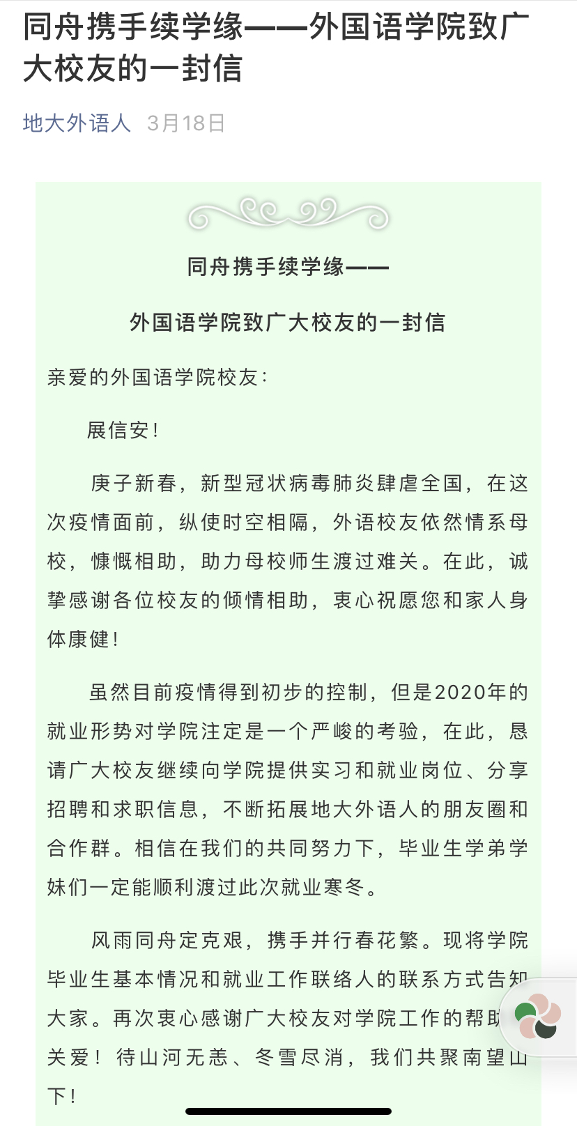 beat365平台唯一官网促进2020届毕业生充分就业工作方案        致校友的一封信