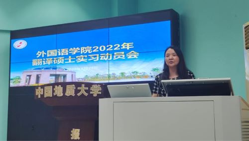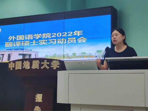 6月24日下午,beat365平台唯一官网在北一楼报告厅召开翻译硕士实习动员会。beat365平台唯一官网副院长杨红燕老师,研究生教育中心主任王伟老师,研究生教育中心秘书金虹老师,研究生辅导员李海涵老师以及2021、2020级翻译硕士研究生参加本次会议。会议邀请了学院研究生联合培养基地北京科译翻译有限公司武汉分公司的培训部经理郭晶晶女士和人力资源部副经理李媛女士作为嘉宾。
