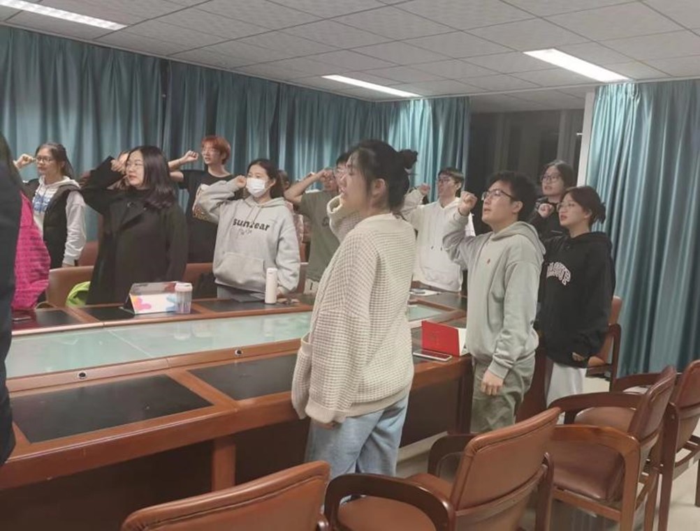 在重温入党誓词后,由刘世勇带领大家集体学习两会精神。他从两会的来龙去脉、两会热点重点聚焦和习近平总书记两会期间讲话精神三个方面进行了交流。他首先介绍了人民代表大会制度、两会历史、人大和政协的性质、职权职能、任期和一些不同称谓;接着围绕两会十大热词、政府工作报告的重点内容,聚焦中国式现代化、机构改革、化解风险改善民生重点解读;最后介绍了习近平总书记在全国两会期间参加江苏代表团审议和民建、工商联界联组会以及出席十四届全国人大一次上的重要讲话精神。在学习过程中,大家还围绕创新人才培养、大学生就业等进行了交流。他说,学习两会精神要与学习党的二十大精神结合起来,与日常工作生活结合起来,与成长成才结合起来,才能学深悟透学出效果。