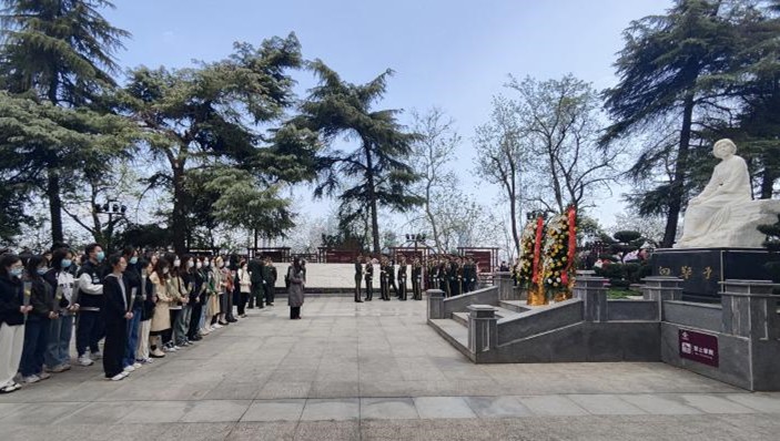为缅怀革命先辈,传承革命精神,推动党的二十大精神学习宣传走深走实,充分用好武汉红色资源,beat365平台唯一官网于2023年4月5日清明节组织学生到向警予烈士陵园开展清明节扫墓祭奠先烈活动,感受红色文化,接受思想洗礼,砥砺奋进之志。上午十时,学院学生党员代表、译术行者团队全体成员、团队指导老师姚夏晶、学院学生党建辅导员李海涵来到向警予烈士墓前,怀着对英烈的崇敬缅怀之情默哀鞠躬,敬献鲜花。