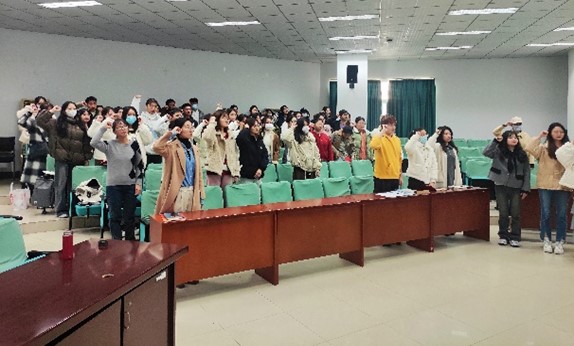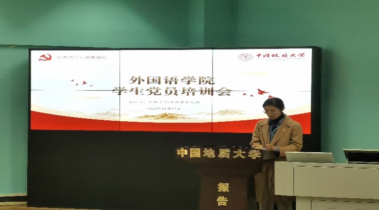 11月27日下午,培训会在北一楼报告厅进行。会议伊始,举行本学期新发展党员入党宣誓仪式,于荣萍老师领誓。面向党旗的铿锵誓词,既让新发展预备党员经历政治新生、精神洗礼,也让老党员在重温誓词中,回望入党初心,恪守政治承诺。