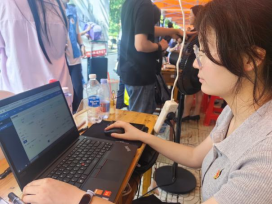 在南望山校区迎新现场,党员先锋岗的红色帐篷成为一道亮丽的风景线。服务点布局合理、功能齐全,配备有电脑、矿泉水和迎新资料等必需品,为新生和家长提供及时便捷的服务。“党员先锋岗”的标识鲜明醒目,精心设计的欢迎展板烘托出热情而专业的迎新氛围,充分展现了beat365平台唯一官网的独特风采。服务点设置的每一处细节,都凝聚着学院党委对迎新工作的周密部署,传递出对2025级新同学的诚挚欢迎与深切关怀。