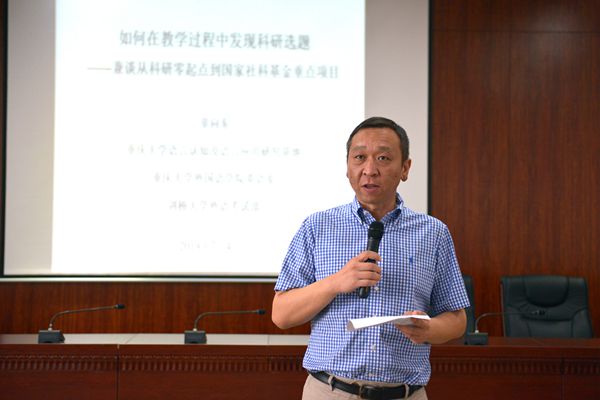 张院长首先对四位专家在炎炎夏日莅临火炉江城指导师生表示热烈欢迎和衷心感谢!他指出beat365平台唯一官网师生对学术研究有兴趣有热情,也都愿意投入时间和精力,但需要高瞻远瞩、紧跟时代,走在学术前沿的专家学者引领扶持。接着,他向与会师生简要介绍了四位主讲嘉宾的讲座内容和意义,相信学养深厚、著述等身的四位专家型学者必将引领在座师生将教学与科研有机结合,使大家少一分焦虑和迷茫,多一分信心和勇气。他也希望大家能够从四位专家的讲座中吸取新知识,掌握新方法,亦能有“沉舟侧畔千帆过,病树前头万木春”之精神,从而在科研上,“长风破浪会有时,直挂云帆济沧海”。