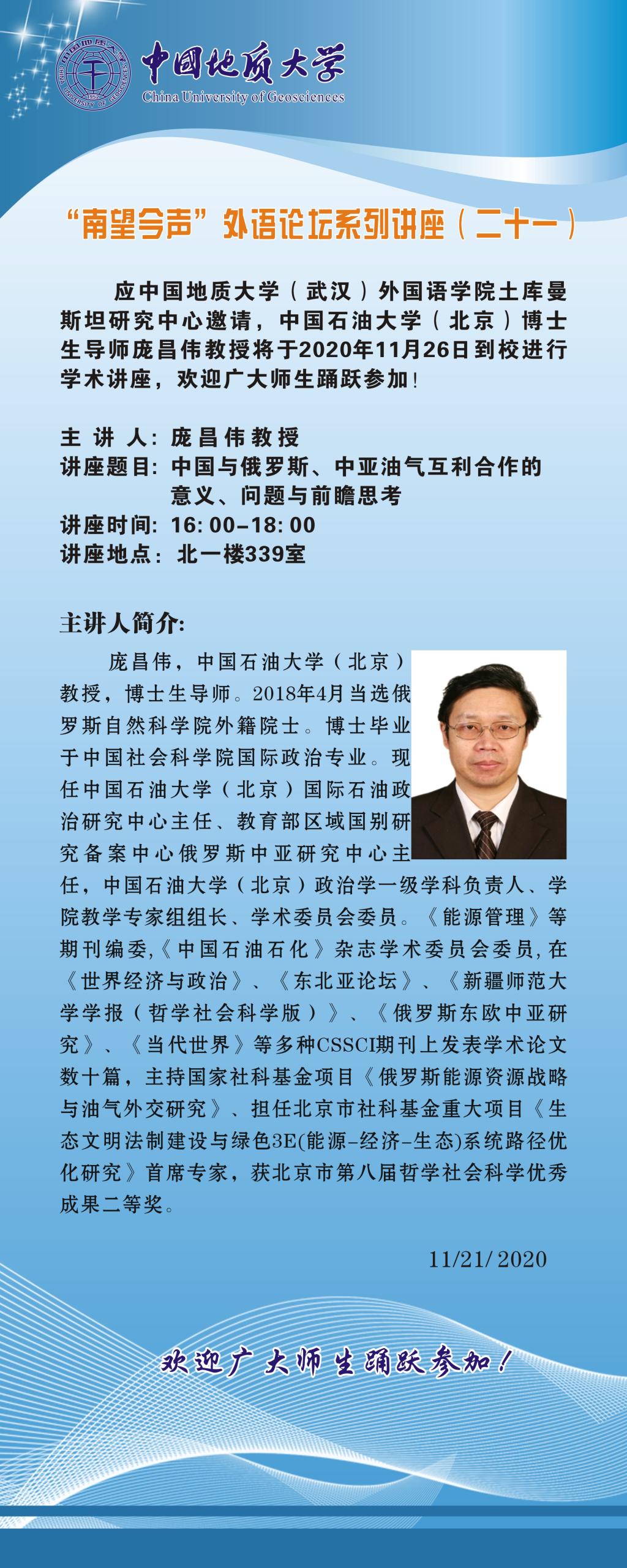 “南望今声”外语论坛系列讲座(二十一)通知