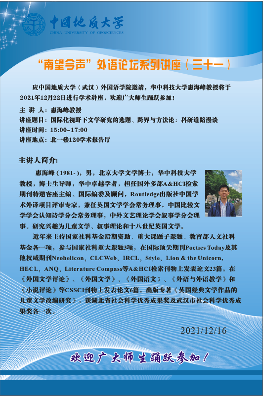 “南望今声”外语论坛系列讲座(三十一)海报