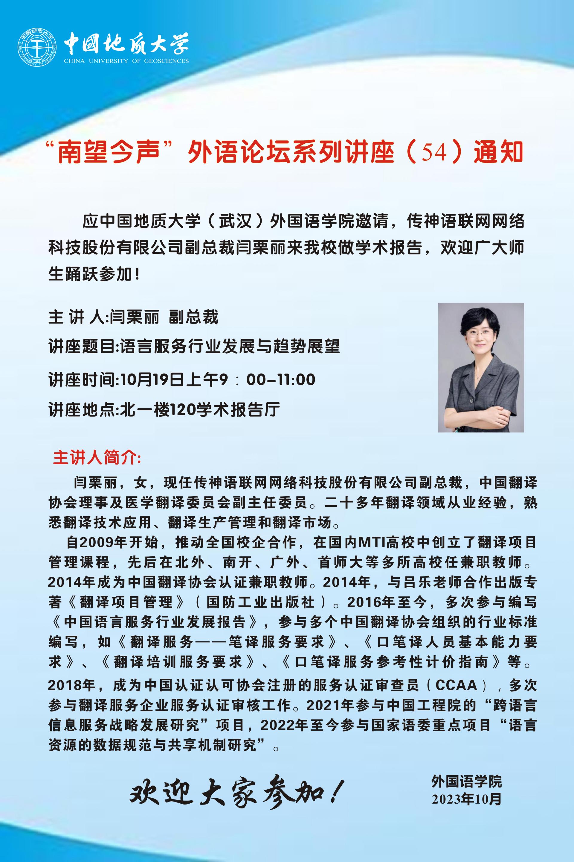 “南望今声”外语论坛系列讲座(54)通知