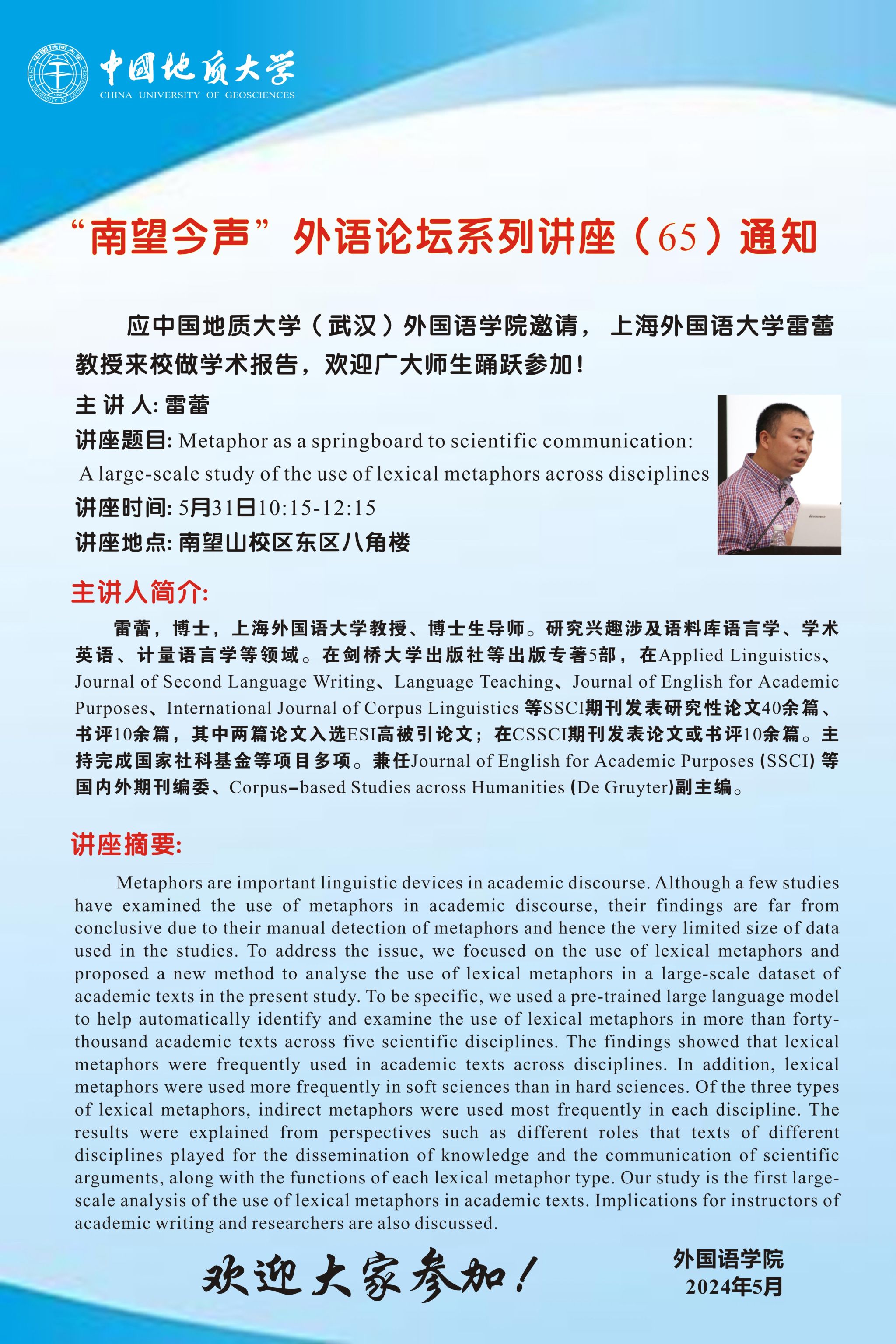 “南望今声”外语论坛系列讲座(65)通知