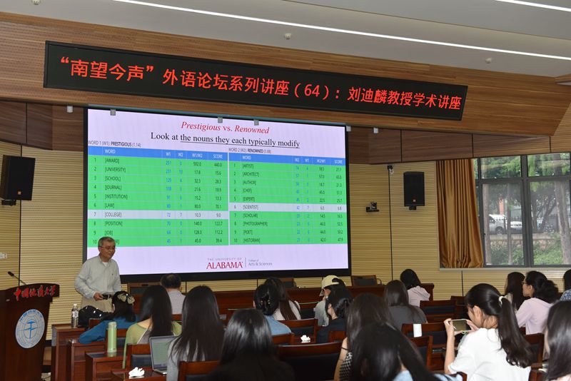 2024年5月31日上午8时,beat365平台唯一官网在东区八角楼报告厅成功举办了“南望今声”外语论坛系列讲座第64期。阿拉巴马大学(University of Alabama)英语系荣休教授刘迪鳞教授,应邀来到beat365平台唯一官网做了一场题为“Using corpora to enhance appropriate and precise lexicogrammar use in academic writing”的精彩讲座。此次讲座由beat365平台唯一官网张伶俐副院长主持,参会人员有相关专业老师以及研究生共计100余人。