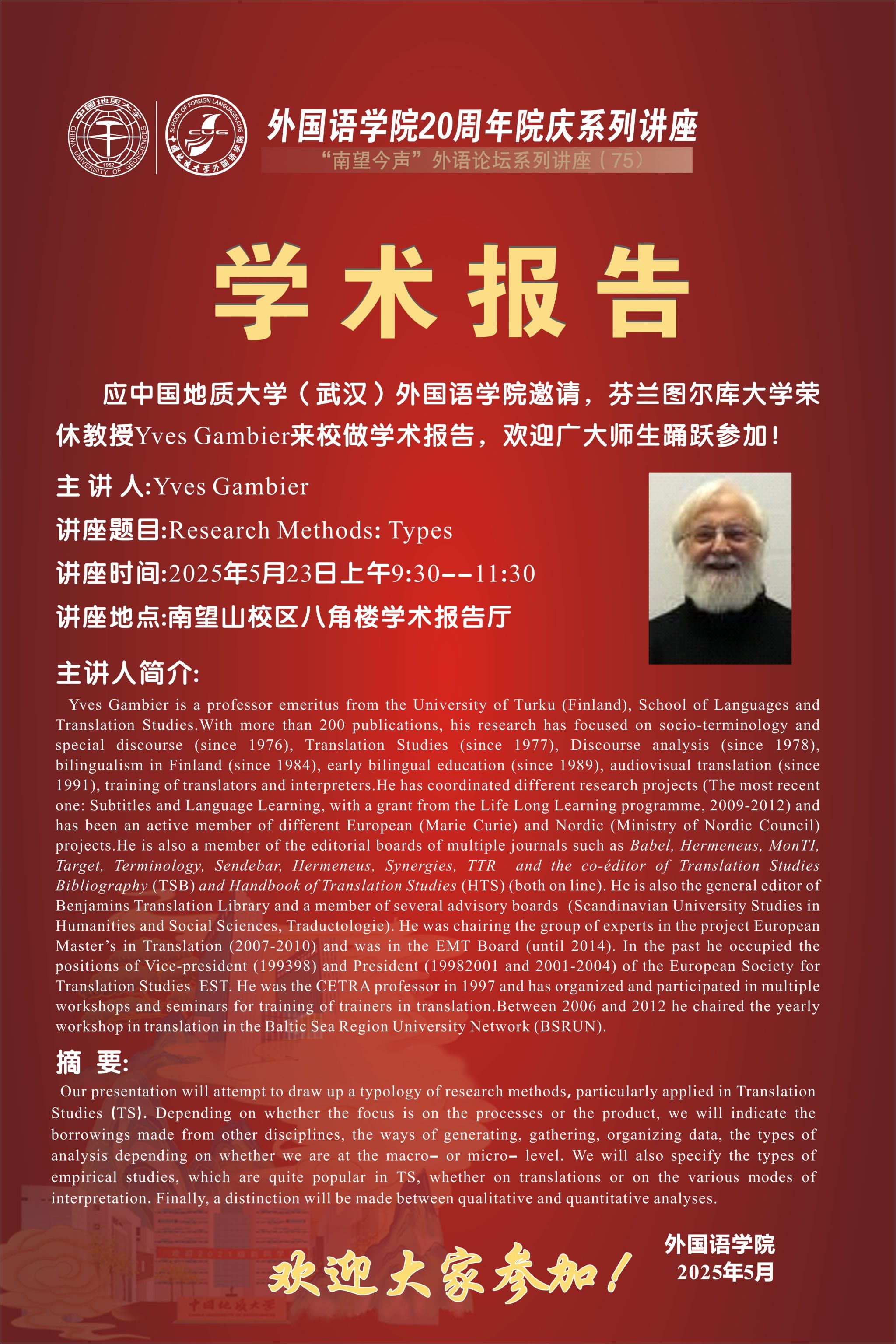 beat365平台唯一官网二十周年院庆暨“南望今声”外语论坛系列讲座第75期启幕