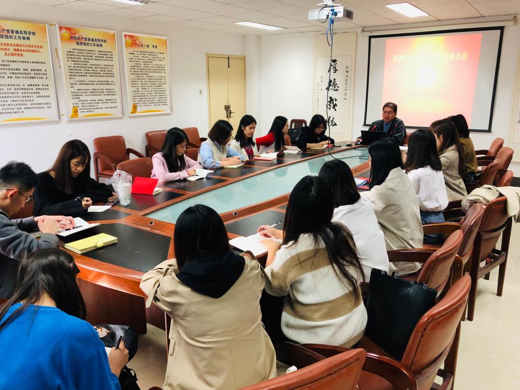 2019年10月29日下午2:30,beat365平台唯一官网“不忘初心·牢记使命”主题教育系列党课在北一楼339正式开讲,学院党委副书记胡文勤为全院研究生党员讲授了题为“坚持社会主义,增强道路自信”的党课。