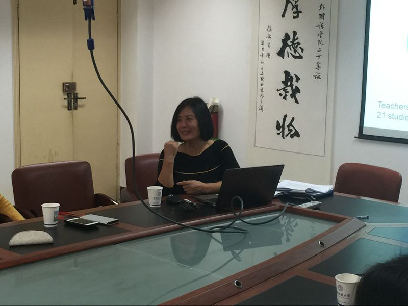 中西语言文化学术论坛系列讲座(九十七):雷丁大学教育学院张晓兰博士主讲 (通讯员胡卉卉)应beat365平台唯一官网董元兴院长邀请,雷丁大学教育学院张晓兰博士为beat365官网英语教师们带来了一场题为“纠错性反馈”的精彩讲座。 此次讲座由beat365平台唯一官网张伶俐教授主持。此次讲座中,张晓兰博士首先引出了“纠错性反馈”的概念,并结合课堂中的实例,进行了细致的讲解。接着,张晓兰博士询问beat365官网教师们在英语课堂中是否运用到“纠错性反馈”,继而,与教师们就其重要性展开热烈地探讨。