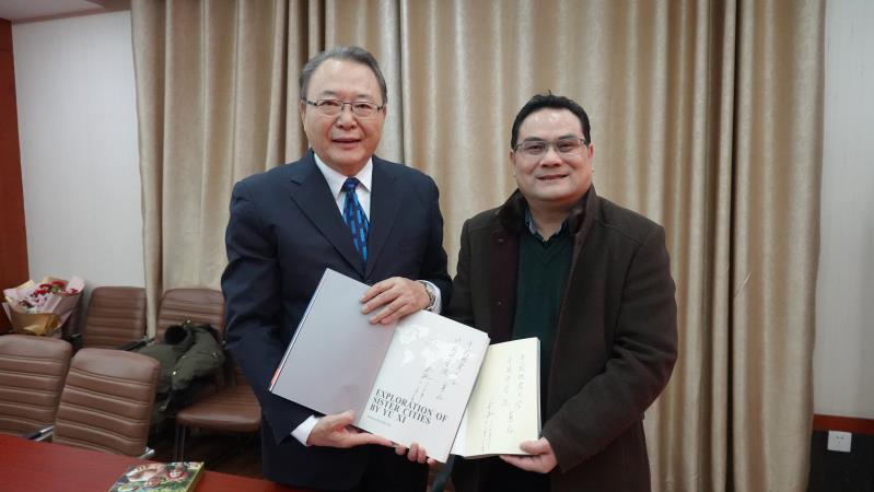 余熙老师向外语学院和国际教育学院分别赠送撰写的书籍。