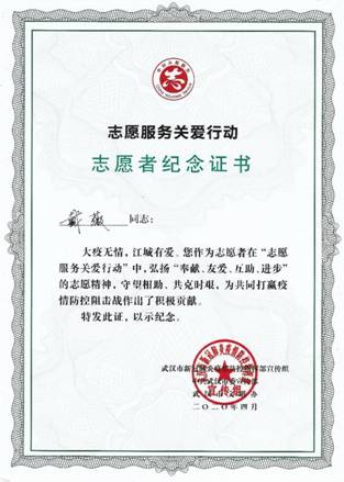 国内疫情防控形势持续向好,人们的生活终将回归正常,志愿者队伍缘起封城而聚,如今也将因解封而散。她愿意为自己的国家、家乡、小区做点事,她相信,绵薄之力也能激起千层浪。病毒来势汹汹,但她毫不畏惧,因为战“疫”前线,有无数个普通的志愿者,通过他们微不足道的善举共筑防疫长城,这场防疫攻坚战一定能赢,人们依旧能在春暖花开的日子继续相守相伴!
