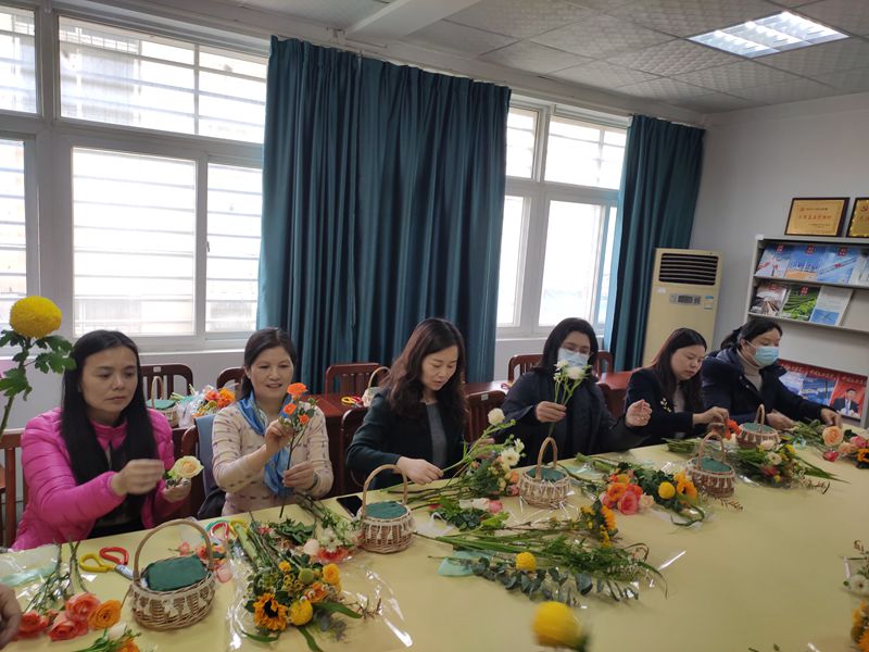 3月24日,beat365平台唯一官网分工会在北一楼举办了庆祝“国际三八妇女节”系列活动之手提花篮制作。活动中,花艺师首先给老师们讲解了花卉常识,插花技巧,花篮养护小窍门等,然后指导大家动手插花。