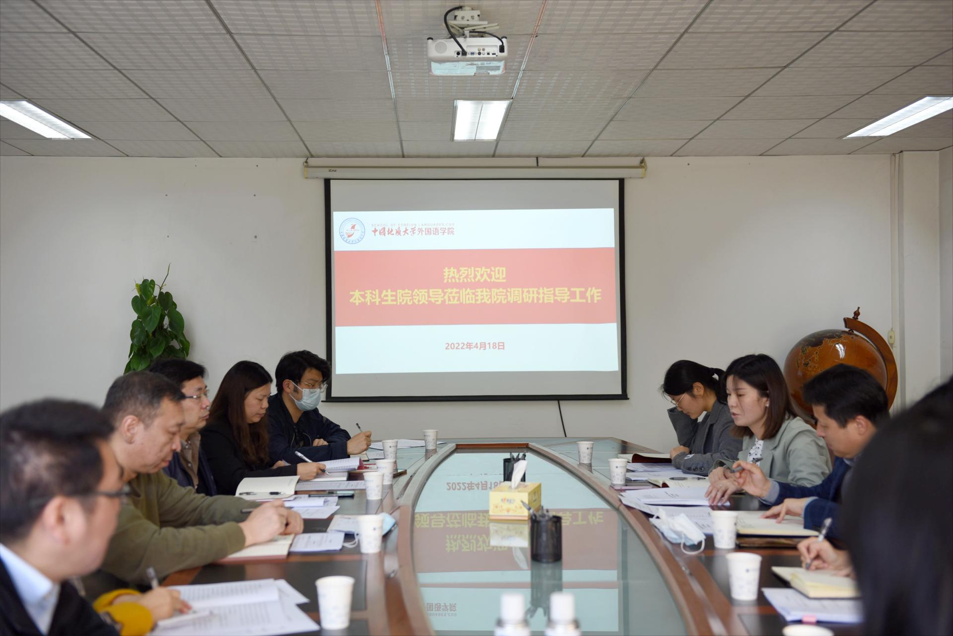 (通讯员 刘倩倩)2022年4月18日上午,为做好新一轮本科人才培养方案修订工作,校本科生院常务副院长周建伟、副院长王莹,以及龚伍军、王美娟、潘娣等一行五人莅临beat365官网调研指导工作。学院党委书记刘世勇,院长张峻峰,副院长周宏图,副院长杨红燕,三级单位负责人及教师代表参加了调研座谈会。会议由张峻峰院长主持。
