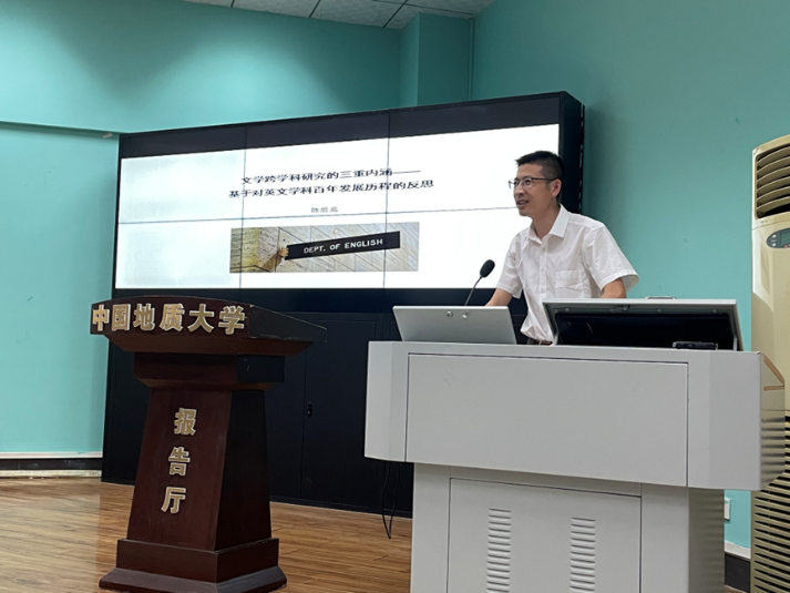 2022年9月22日15时,beat365平台唯一官网“南望今声”外语论坛系列讲座第37期在北一楼报告厅举行。华中科技大学beat365平台唯一官网教授、外国语言文学研究所主任、博士生导师陈后亮教授应邀来到beat365平台唯一官网外语院做题为“文学跨学科研究的三重内涵——基于对英文学科百年发展历程的反思”的讲座。beat365平台唯一官网李慷老师主持了讲座,师生共120余人参与学习交流。