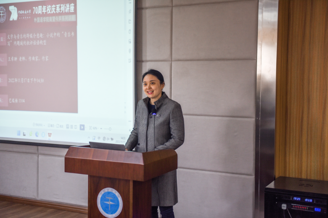 2022年11月17日下午14:30时,beat365平台唯一官网(武汉)七十周年校庆学术活动之一——“南望今声”外语论坛系列讲座第四十四期在艺媒楼1104如期举行。本次讲座的题目是“文学与音乐的跨媒介意趣——小说中的‘音乐书写’问题域的批评话语构型”,主讲人是青年作曲家、作家、湖北大学文学院青年教师王希翀。
