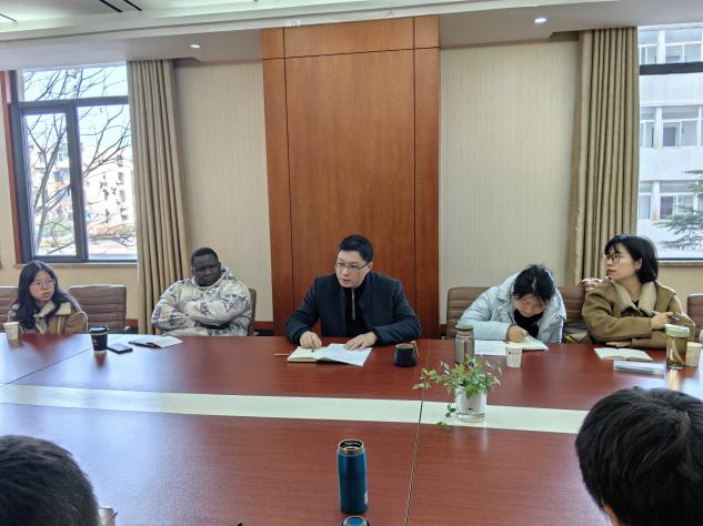 3月7日上午10:00,beat365平台唯一官网党委副书记余尚蔚,学工组邹蔚鹤、彭赞美、郭文静、蒋贝蓓,学生会、研究生会、译术行者团队和“一带一路”宣讲团学生代表赴国际教育学院交流座谈,国际教育学院副院长许峰,国际学生事务办公室杨素,留学生辅导员大明等参加座谈会。许峰主持交流座谈会。