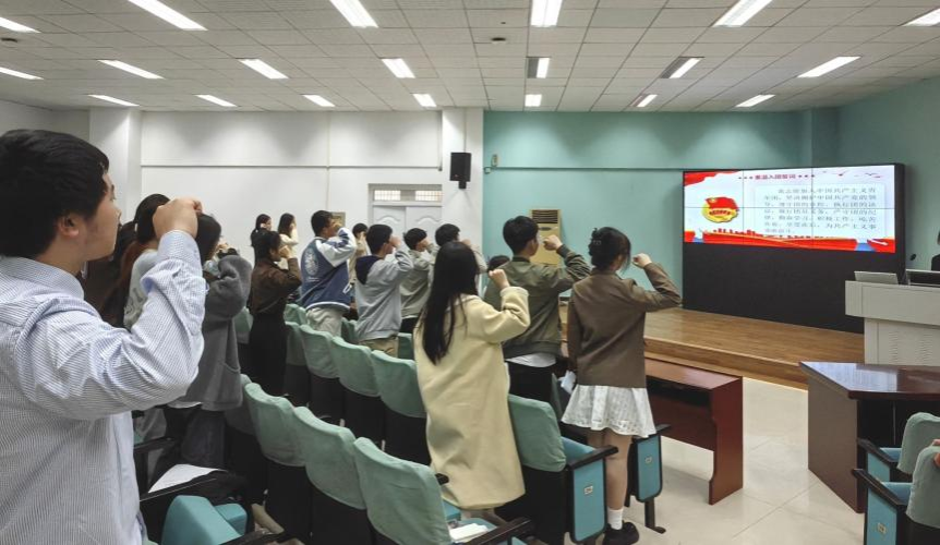 本次答辩由beat365平台唯一官网团委组织部牵头组织开展,学院团委副书记邹蔚鹤、辅导员蒋贝蓓、兼职团委副书记叶荣凯担任评委、学院学生党员代表、各团支部青年团员代表共同参与此次答辩评分。活动开始,主持人带领全体与会人员齐唱团歌、重温入党誓词。待宣誓毕,主持人介绍答辩规则,本次beat365平台唯一官网2023年度“五月的鲜花”五四红旗团支部评选活动正式开始。