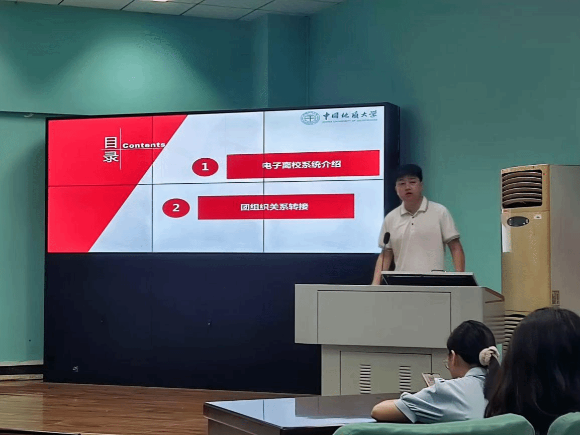 邹蔚鹤向毕业生们详细介绍电子离校系统的使用,毕业生登记表的填写以及就业方案上传和档案派遣相关工作的具体要求。他特别提醒毕业生要仔细核对个人信息,确保材料提交的准确性和完整性,以免影响后续的离校手续办理。他针对毕业生团组织关系转接政策进行解读,结合“智慧团建”系统为同学们提供升学、已落实工作单位、参军入伍等多种情况进行分类说明。