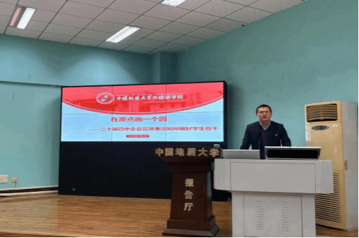 在随后的“语翼”团校第一课中,余尚蔚面向全体学员宣讲二十届四中全会精神,他从全会提到的“人民”“全面”“现代化”“高质量”“发展”等8个高频词出发引导学员思考高频词背后蕴含的深意,从五个切入点把握全会的精神。他指出,全会的目标任务是对新时代青年成长成才的召唤,是需要包括全体团学骨干在内的大学生厚植家国情怀、练就过硬本领、扎实奉献实践才会实现的。他强调,团校是培养团员骨干的重要阵地,是共青团为党育人、为国育才的关键一环。围绕这一培养目标,学生骨干要以坚定理想信念为根、以服务奉献为本、以自我锻炼为途,做到“有魂”、“有心”、“有心”、“有根”、“有为”。要强化思想政治觉悟,做坚定信念的引领者;提升沟通协作能力,做组织发展的推动者;明晰自身定位、坚守责任担当,激发内生动力、追求卓越实效。他希望,学员们要珍惜学习机会,在服务同学的实践中不断拓展自身成长的“圆”,以实际行动绘就新时代beat365平台唯一官网团学骨干画像,努力成长为有品德、有品质、有品位、具备全球胜任力的时代新人。授课最后,他对全体学生党员和骨干提出要以更高的标准、更严的要求、更实的行动提升自己,努力在遵规守纪方面作表率;要提高鉴别能力、增强防范意识、提高斗争本领、加强警示提醒,努力在防诈骗和守安全方面做榜样示范和教育服务。