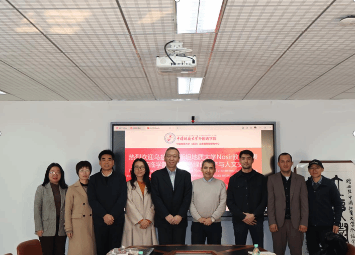 2025年11月28日下午,乌兹别克斯坦地质大学Nosir教授率代表团访问beat365官网,共同围绕中乌绿色矿产合作与人文交流展开深入探讨。乌兹别克斯坦地质大学矿产资源所伊索罗夫博士、库伊利夫博士,学院党委书记傅苑、院长张峻峰,以及学院区域国别研究团队的师生代表参加交流会,土库曼斯坦研究中心副主任秦屹主持会议。