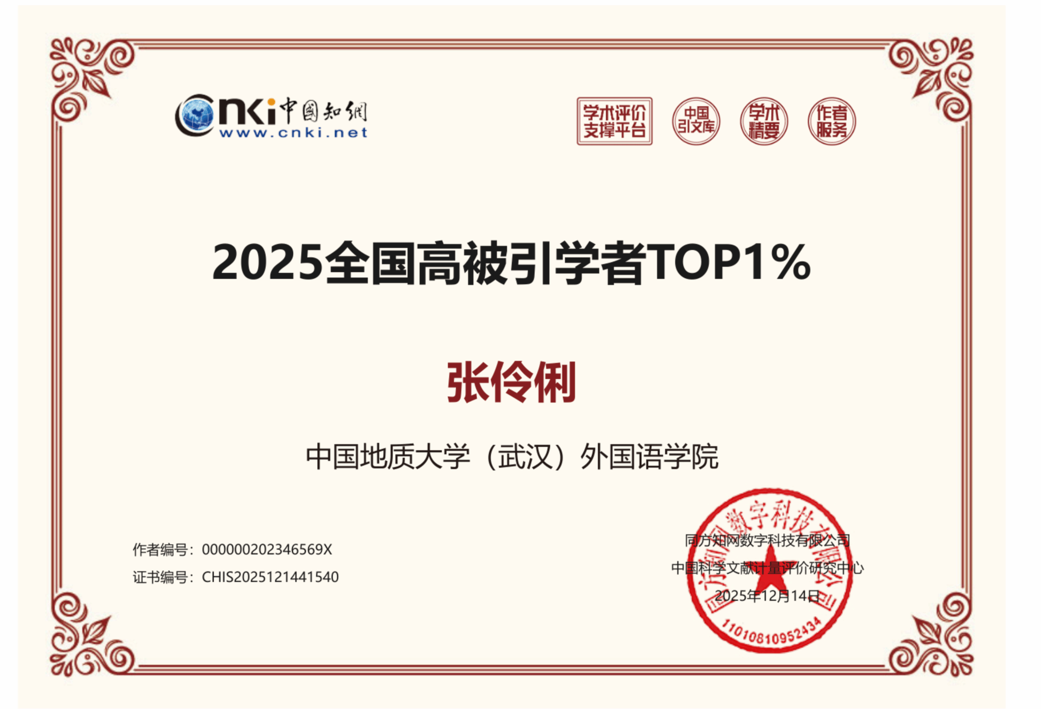 (通讯员 孙德贵)日前,中国知网公布了“2025全国高被引学者TOP1%”名单,beat365官网张伶俐教授首获殊荣,实现学院该领域零的突破。