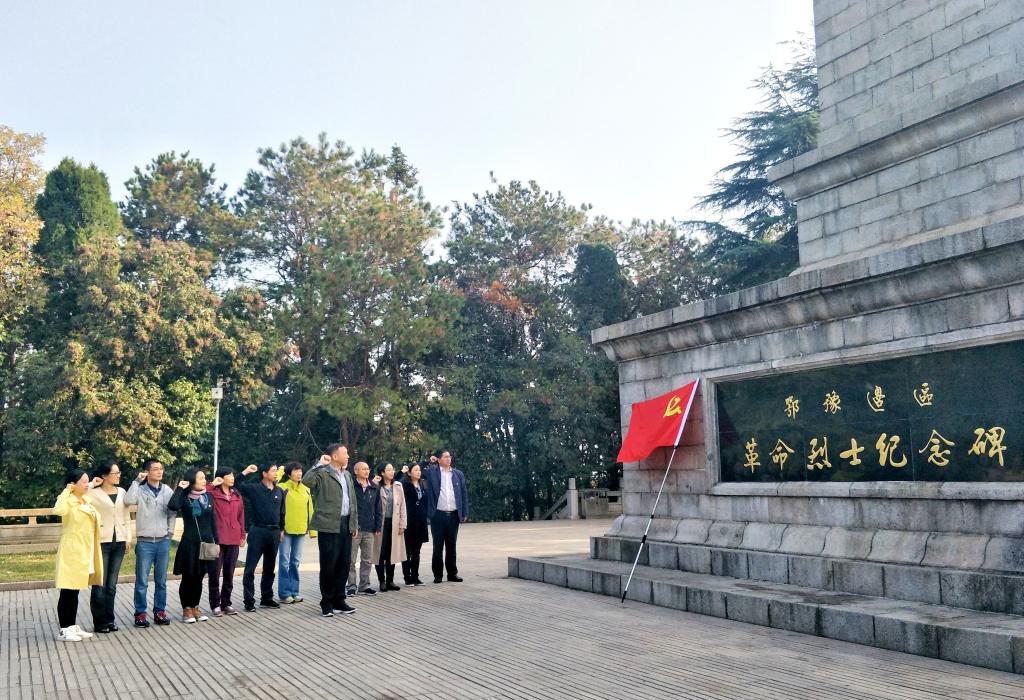11月10日上午,学习实践组来到全国百家爱国主义教育基地、全国十大陵园之一的大悟县鄂豫皖边区烈士陵园,瞻仰烈士纪念碑、中原突围纪念碑,并在鄂豫边区革命烈士纪念碑前向革命先烈英灵三鞠躬,在庄严肃穆的气氛中重温入党誓词,坚定理想信念。