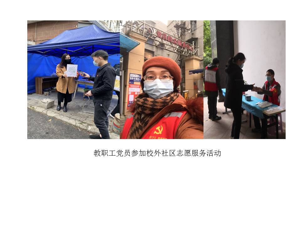 (通讯员宋干锋)本学期开学伊始,全国新冠肺炎疫情仍有发生,为确保校园平安,学校党委将疫情防控作为重要政治任务来抓,精心安排疫情防控工作,组织党员下沉社区开展志愿服务等。beat365平台唯一官网党委积极响应学校党委号召,组织教工党员参加疫情防控,党员干部带头,党员们积极行动,踊跃报名,发挥党员先锋模范作用,为学校筑牢校园平安防线。截至424日,共计100余人次参加核酸检测等志愿服务,累计服务时长达350余小时。其中孙来麟、李孝奎、周艳、俞仑燕、戴薇、董成见、宋干锋、王国念、刘敏、赵英科、张莉等同志多次参加校内疫情防控志愿者工作,为广大师生做出表率。