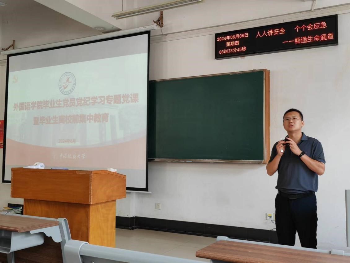 “打铁还需自身硬”。又逢一年毕业季,beat365平台唯一官网开展毕业生党员党纪学习集中教育,为毕业生党员系好走向社会的第一粒扣子。党委副书记、纪委书记余尚蔚为全体毕业生党员及全体毕业生讲授党纪学习教育专题党课。